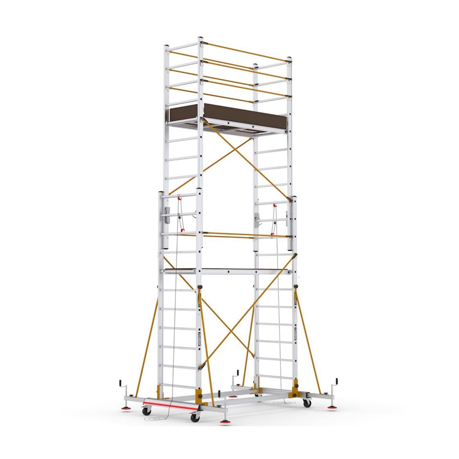 Das Telesafe XLN Gerüst bietet flexible Einsatzmöglichkeiten für Arbeiten in Höhen von 4.95 m bis zu 7.17 m. Dieses teleskopierbare XXL-Gerüst zeichnet sich durch eine robuste und trittsichere Arbeitsplattform von 60 x 155 cm mit integrierter Luke aus. Ausgestattet mit feststellbaren Rollen und einem Kippschutz, gewährleistet es maximale Sicherheit bei der Verwendung. Das aus hochwertigem Aluminium gefertigte Gerüst trägt bis zu 165 kg, erfüllt die Anforderungen der Norm EN 1004 und ist TÜV geprüft. Ideal für Bau-, Wartungs- und Renovierungsarbeiten, bietet es eine stabile und sichere Arbeitsumgebung.